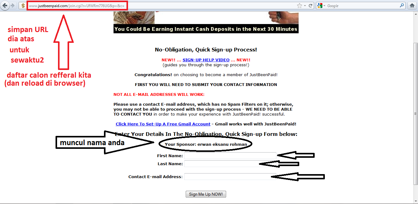 tunjukan tanda panah lalu >> klik here and JOIN free now..